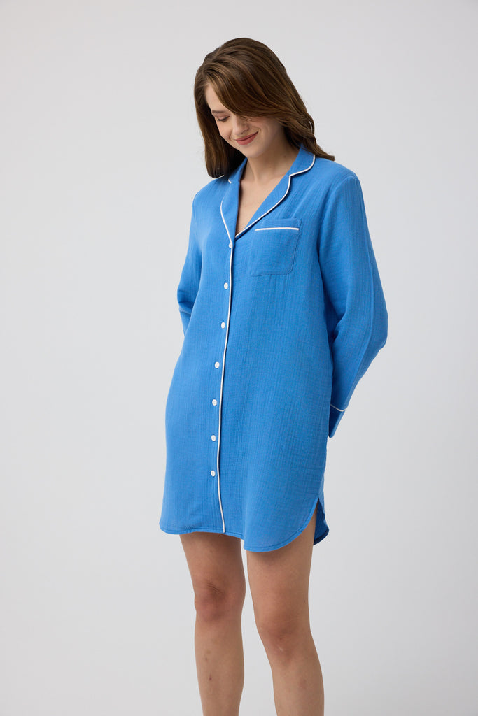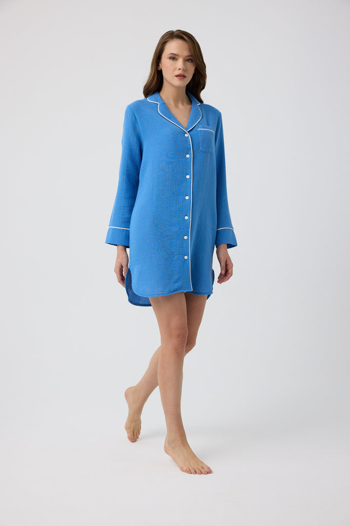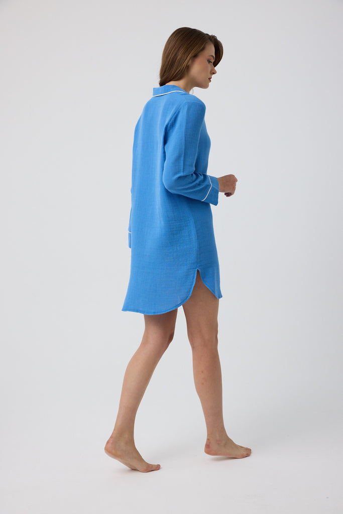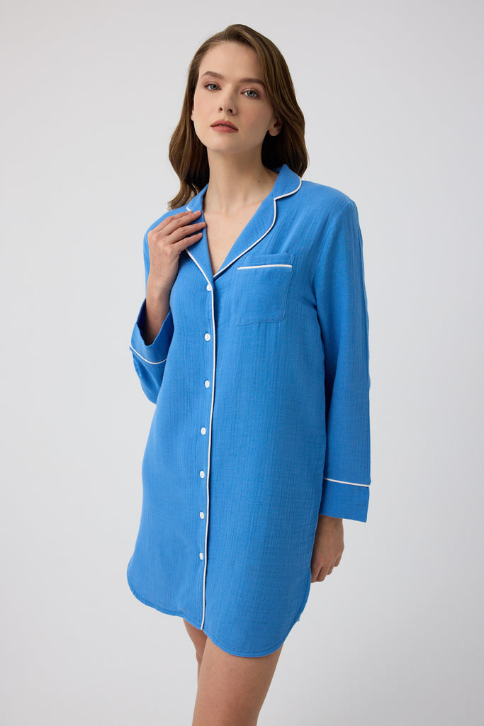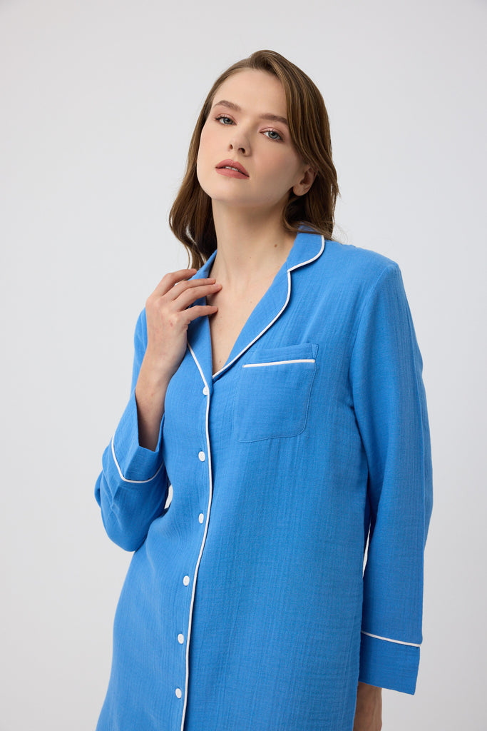 Mavi müslin Diana gömlek gecelik