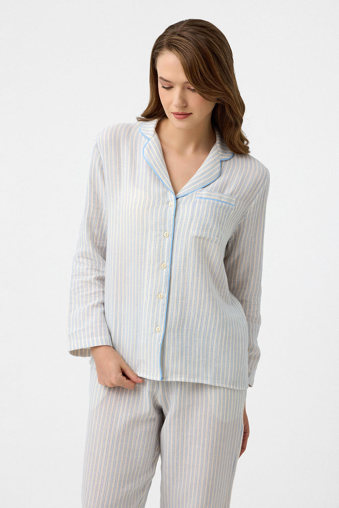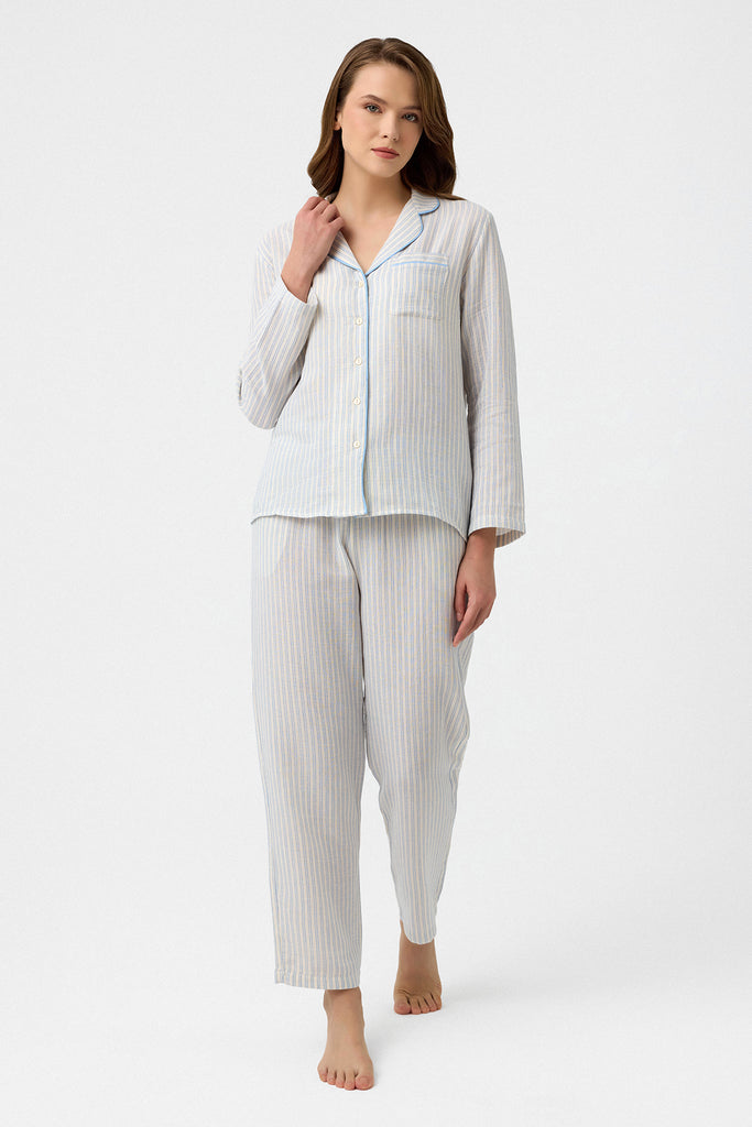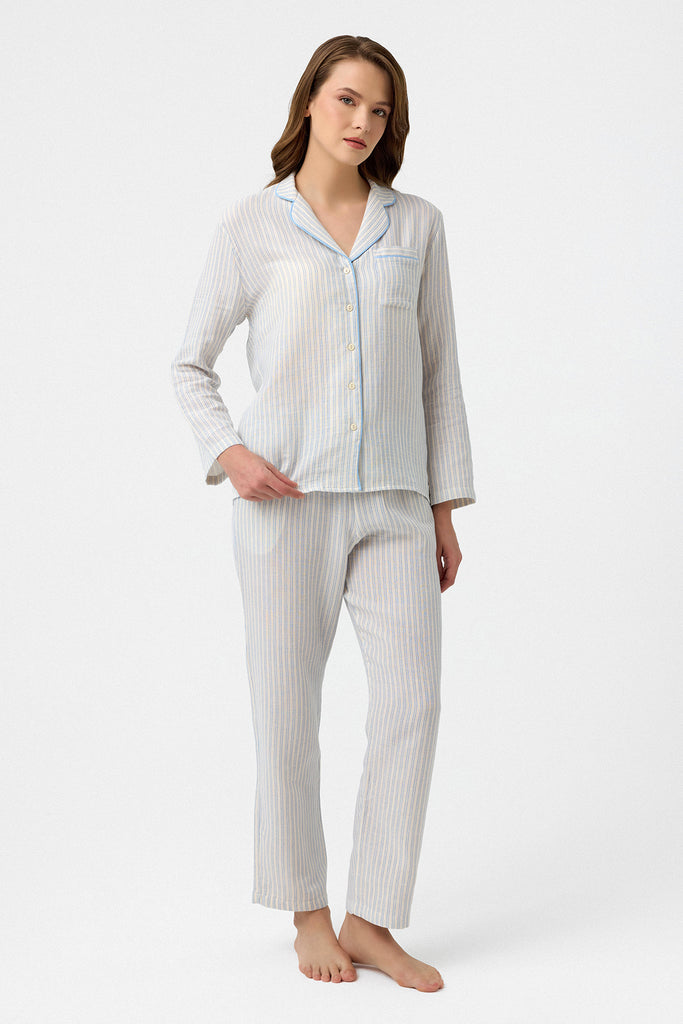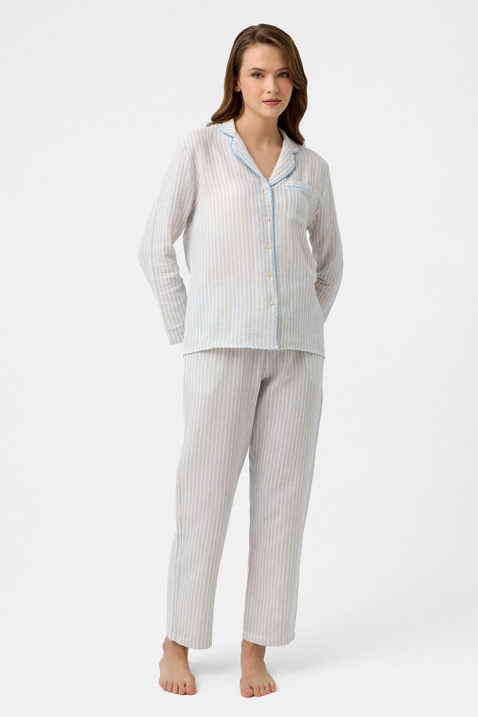 Mavi çizgili Lara müslin pijama takım